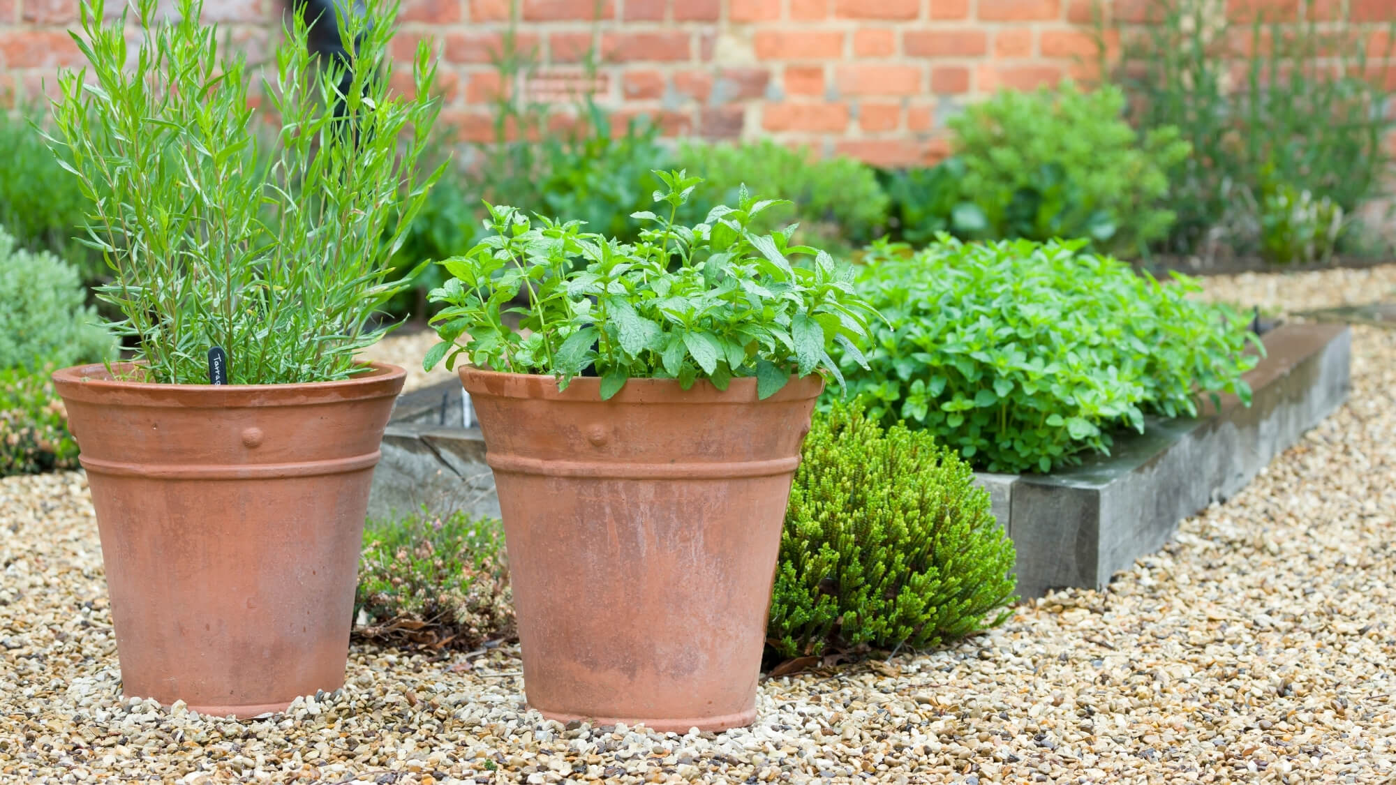 Herb borders alongside patios or terraces